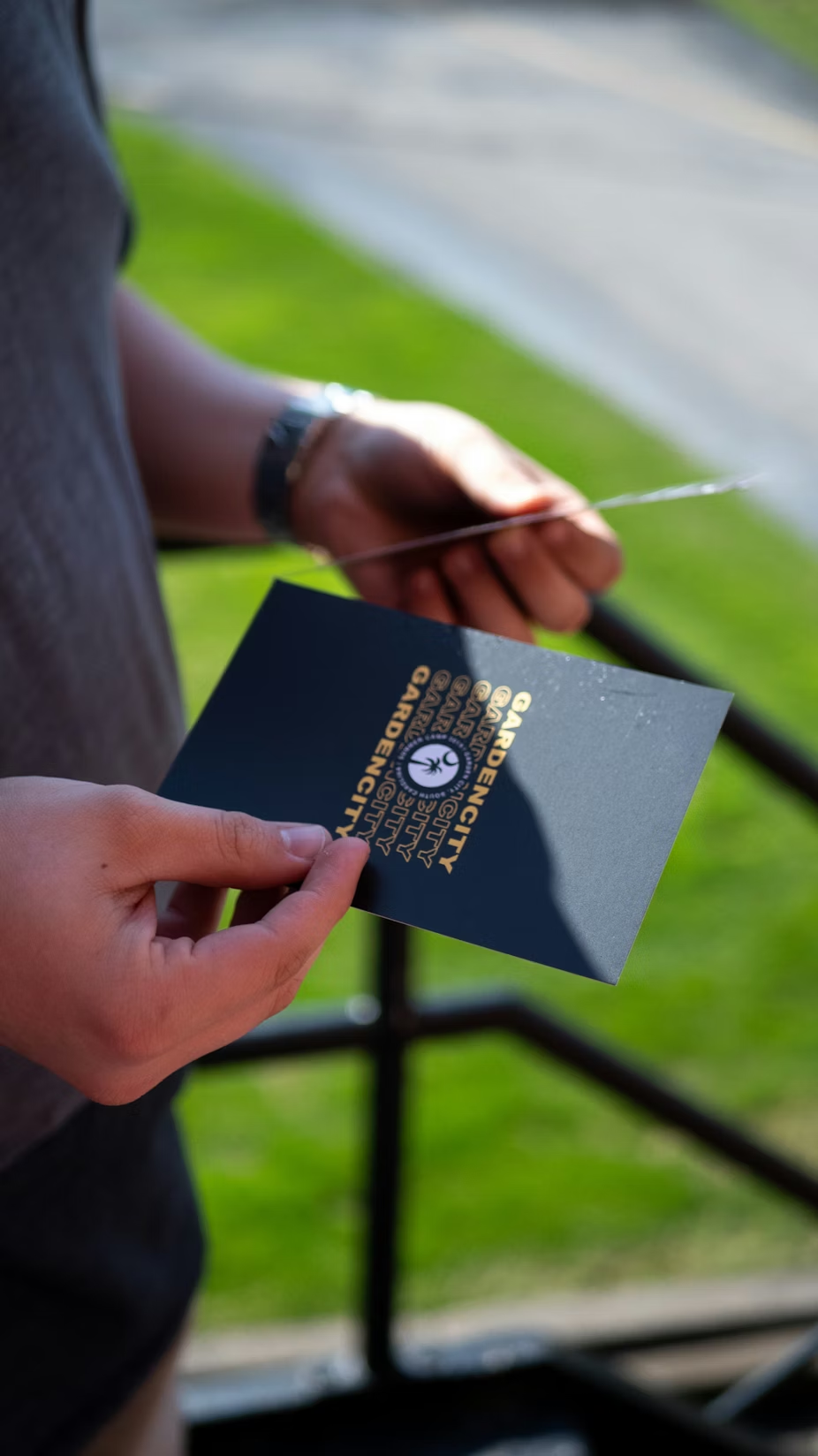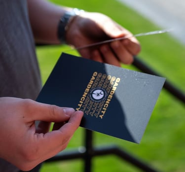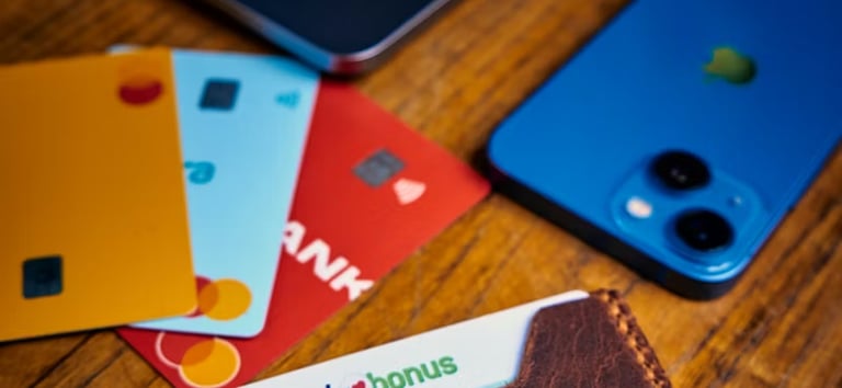 a hand holding a credit card in front of a computer